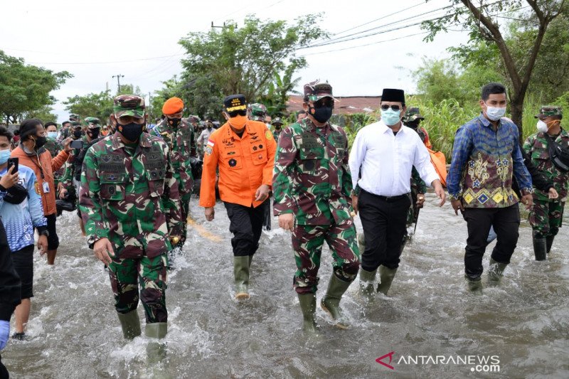 Bersama Kepala Basarnas Marsekal Madya Bagus Puruhito serta anggota Komisi I DPR RI Syaifullah Tamliha, Panglima TNI meninjau lokasi banjir di jalan poros lintas kabupaten perbatasan Kota Banjarbaru dan Kabupaten Tanah Laut. Ribuan warga terdampak baik di Kelurahan Landasan Ulin Selatan Kota Banjarbaru maupun Desa Pandahan, Kecamatan Bati-Bati, Kabupaten Tanah Laut.