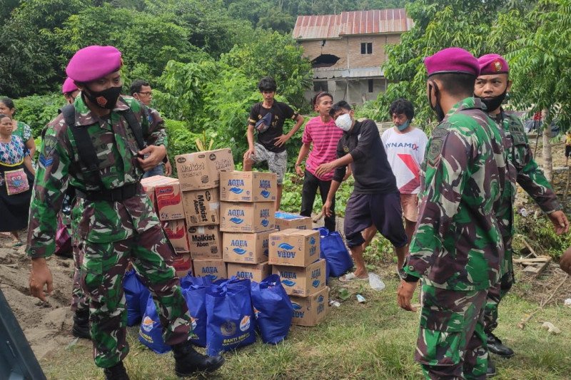 “Semua logistik berupa kebutuhan pokok makanan dan minuman serta obat-obatan ini adalah bantuan logistik yang datang dari Makassar dan Surabaya, yang merupakan sumbangsih dari pihak Lantamal VI serta Koarmada II, pemerintah daerah dan masyarakat umum,” katanya.