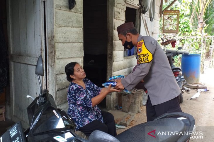 Kapolsek Jebus Kompol M. Saleh mengatakan bantuan yang disalurkan berupa paket berisi berbagai kebutuhan pokok sehari-hari, seperti beras, minyak goreng, mi instan dan lainnya.