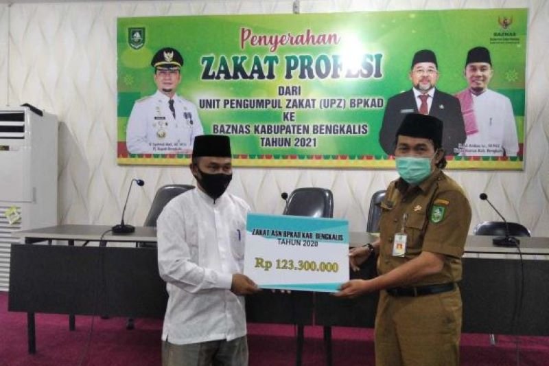 Provinsi Riau, jurnalsumatra.com – Badan Amil Zakat Nasional (Baznas) Kabupaten Bengkalis Provinsi Riau menerima penyerahan zakat profesi dari Unit Pengumpul Zakat (UPZ) Badan Pengelolaan Keuangan dan Aset Daerah (BPKAD) Kabupaten Bengkalis tahun 2021 sebesar Rp123,3 juta.