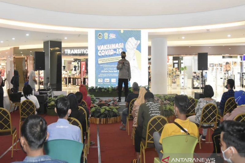 Banjarmasin, Jurnalsumatra.com – Polda Kalimantan Selatan melakukan edukasi vaksinasi COVID-19 kepada para pekerja dan pengunjung Mal Duta Banjarmasin.