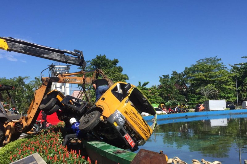 “Tim kami sudah berada di tempat kejadian perkara, dan saat ini masih proses evakuasi truk yang masuk ke kolam air mancur tersebut,” kata Kasatlantas Polresta Pontianak, AKP Rio Sigal Hasibuan di Pontianak, Senin.