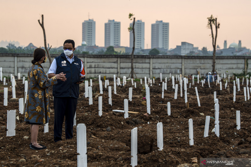 Jakarta, jurnalsumatra.com – Gubernur DKI Jakarta Anies Baswedan meninjau Taman Pemakaman Umun (TPU) khusus COVID-19 di Rorotan, Cilincing, Jakarta Utara, Kamis.