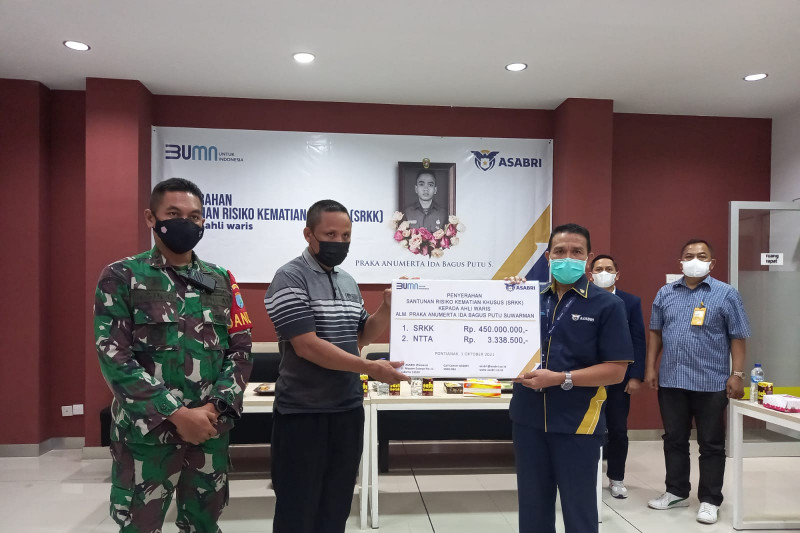 Manfaat yang diterima oleh Praka (Anm) Ida Bagus Ketut Suwarna diserahkan kepada ayah Ida Bagus Ketut Sutelsa berupa SRKK sebesar Rp450 juta dan NTTA sebesar Rp3,34 juta. Manfaat asuransi tersebut diserahkan oleh Kepala Cabang Asabri Pontianak Tanjung.