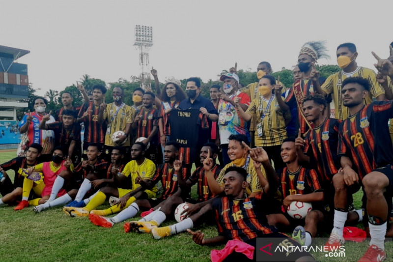 Menteri BUMN menyelamati tim sepak bola putra Papua dan mengatakan kedua tim sudah bermain dengan baik dan sportif.
