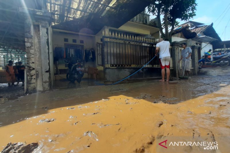 Pantauan Antara di lokasi sekitar pukul 09.00 WIB, warga mulai membersihkan sisa-sisa lumpur banjir dengan ketebalan mencapai 30 sentimeter (cm) di pekarangan rumah.