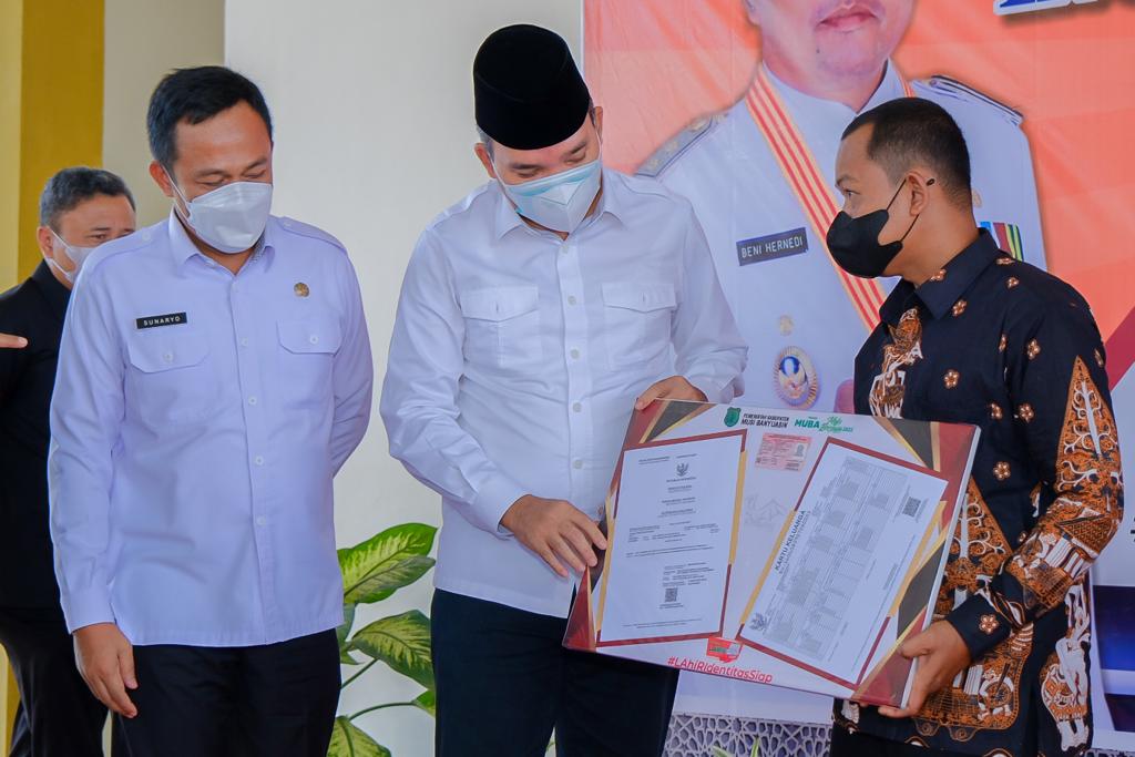 Muba, jurnalsumatra.com – Plt Bupati Musi Banyuasin (Muba) Beni Hernedi SIP melakukan kunjungan kerja ke Kecamatan Keluang dalam rangka penyerahan produk Inovasi Paket Laris dan KIA Go To School. Turut hadir dalam acara tersebut, yakni Dandim 0401 Muba Letkol Arh Fariz Kurniawan, Asisten III Setda Muba Sunaryo SSTP MM sekaligus Plt Kadisdukcapil Muba, Anggota DPRD Muba Supriasihatin dan Sodingun, perwakilan Kasi Datun Kajari Muba Lidya Desrika SH, BPSDM Provinsi Sumsel Farhat Sukri SE MSi, Forkopimcam Keluang dan para kepala desa serta kelurahan dalam Kecamatan Keluang, bertempat di Balai Serbaguna Kelurahan Keluang Kecamatan Keluang, Senin (6/12/2021).