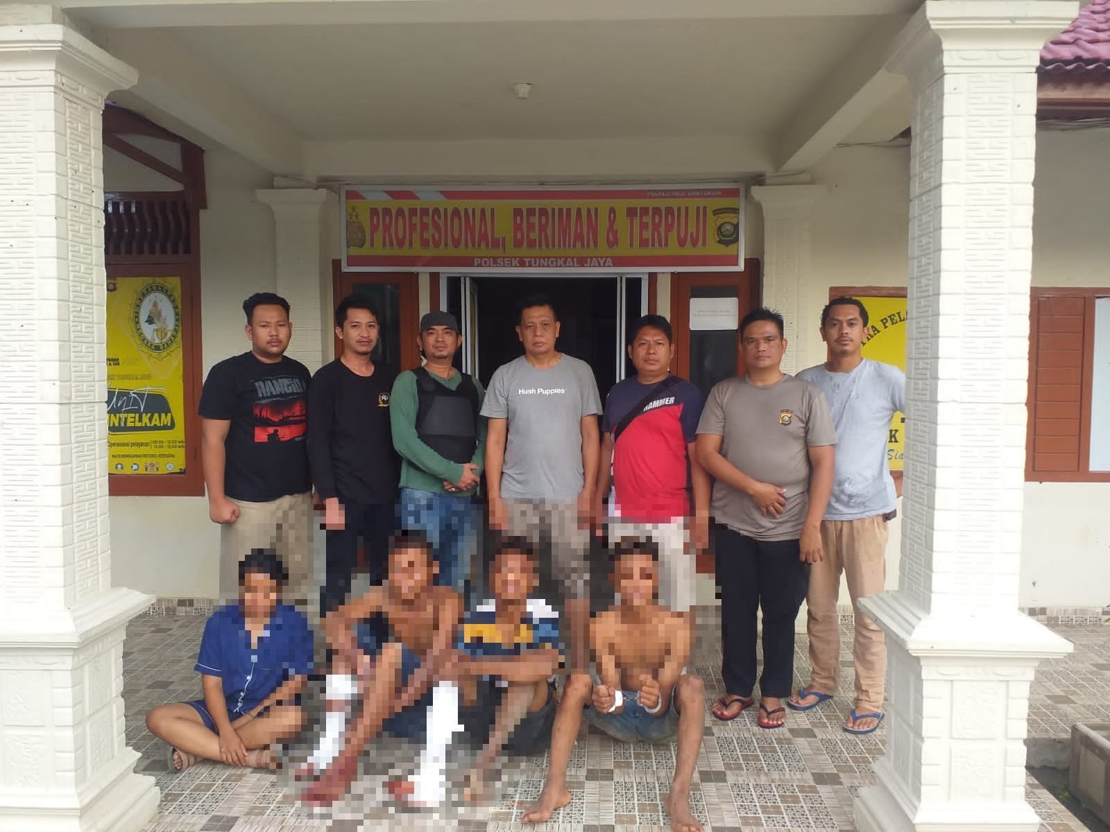 Penangkapan ke-empat orang pelaku tersebut, kurang dari 1×12 jam se-usai kejadian, berkat ketegasan tim Penyengat Tuja yang dipimpin oleh Kanit Reskrim Polsek Tungkal Jaya Aiptu APRIANTO,SH alias IGO langsung bergerak melalukan pengejaran. Kapolres Musi Banyuasin Akbp Alamsyah Pelupessy, SH, S.ik, M.si melalui Kapolsek Tungkal Jaya Iptu Nirwan Haryadi mengatakan setelah pihaknya mendapatkan laporan dari korban Ade Kurniawan (21) warga Kelurahan Bayung Lencir Musi Banyuasin dengan dipimpin Kanit Reskrim Polsek Tungkal Jaya Aiptu APRIANTO,SH alias IGO langsung bergerak melalukan pengejaran.