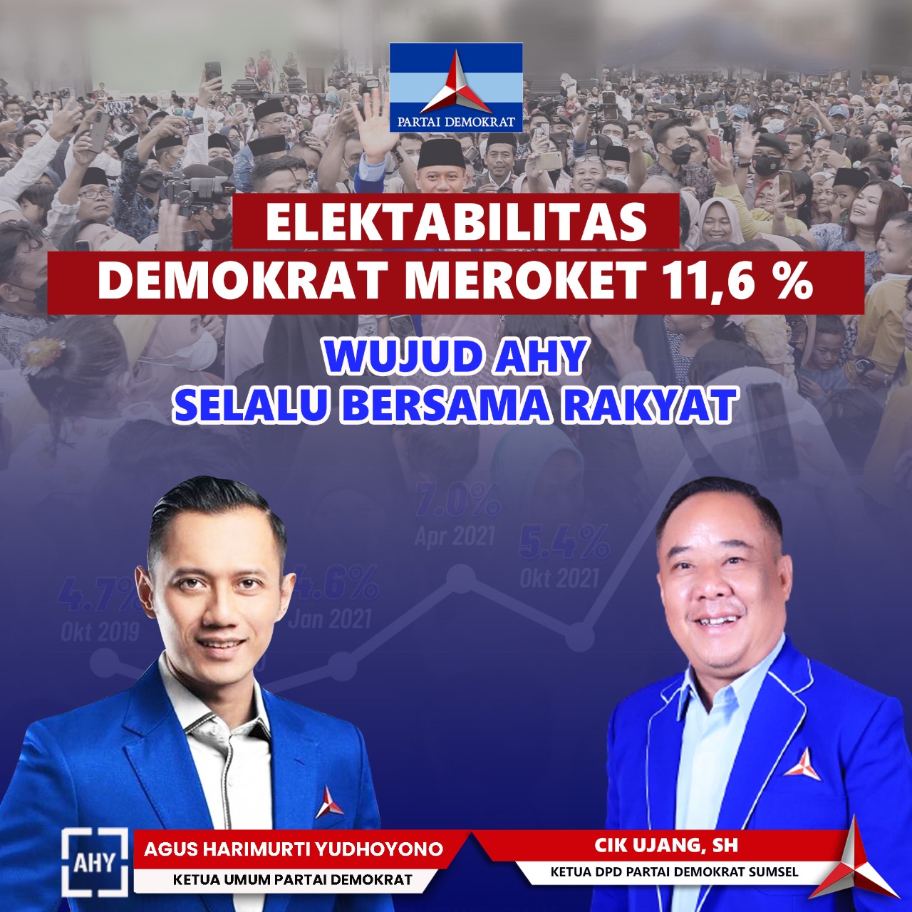 Ketua Dewan Pimpinan Daerah (DPD) Partai Demokrat Sumsel Cik Ujang SH menyampaikan, rasa syukur atas peningkatan Elektabilitas dengan pencapaian tersebut, dapat memotivasi dirinya dan seluruh kader Partai Demokrat di 17 Kabupaten/Kota se-Sumsel.