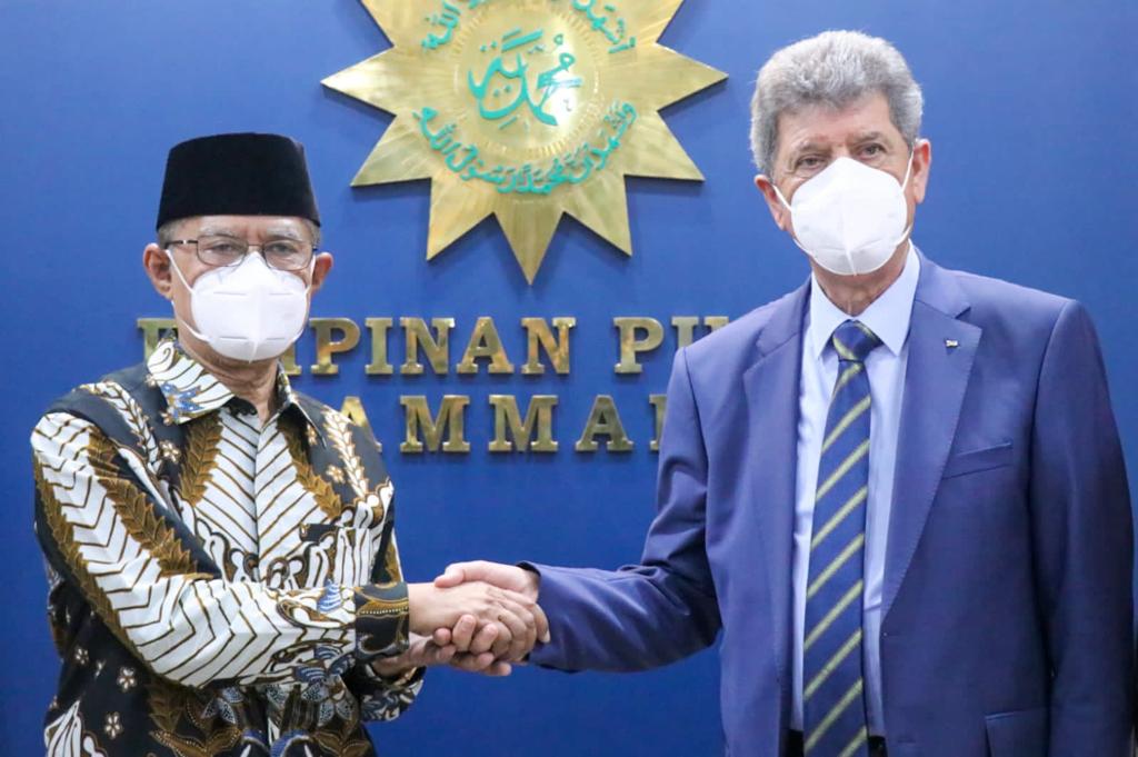 Yogyakarta, jurnalsumatra.com – Pimpinan Pusat Muhammadiyah menerima kunjungan Duta Besar (Dubes) Palestina, Dr Zuhair Al-Shun, di Kantor PP Muhammadiyah Yogyakarta, Jl Cik Ditiro, Yogyakarta, Jum’at (15/7/2022). Dalam kunjungannya itu Dubes Palestina ditemui langsung oleh Ketua Umum PP Muhammadiyah Prof Dr Haedar Nashir, MSi.