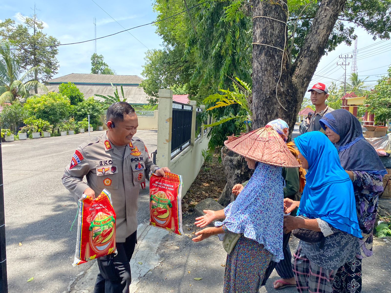 Lahat, jurnalsumatra.com – Bertempat didepan Rumah Dinas yang berlokasi di Jl.H.Barlian kelurahan Bandar Jaya kecamatan Lahat, Kabupaten Lahat, Kapolres Lahat AKBP Eko Sumaryanto SIK memberikan bantuan sosial (Bansos) puluhan Sak Beras ukuran 5 Kilogram.