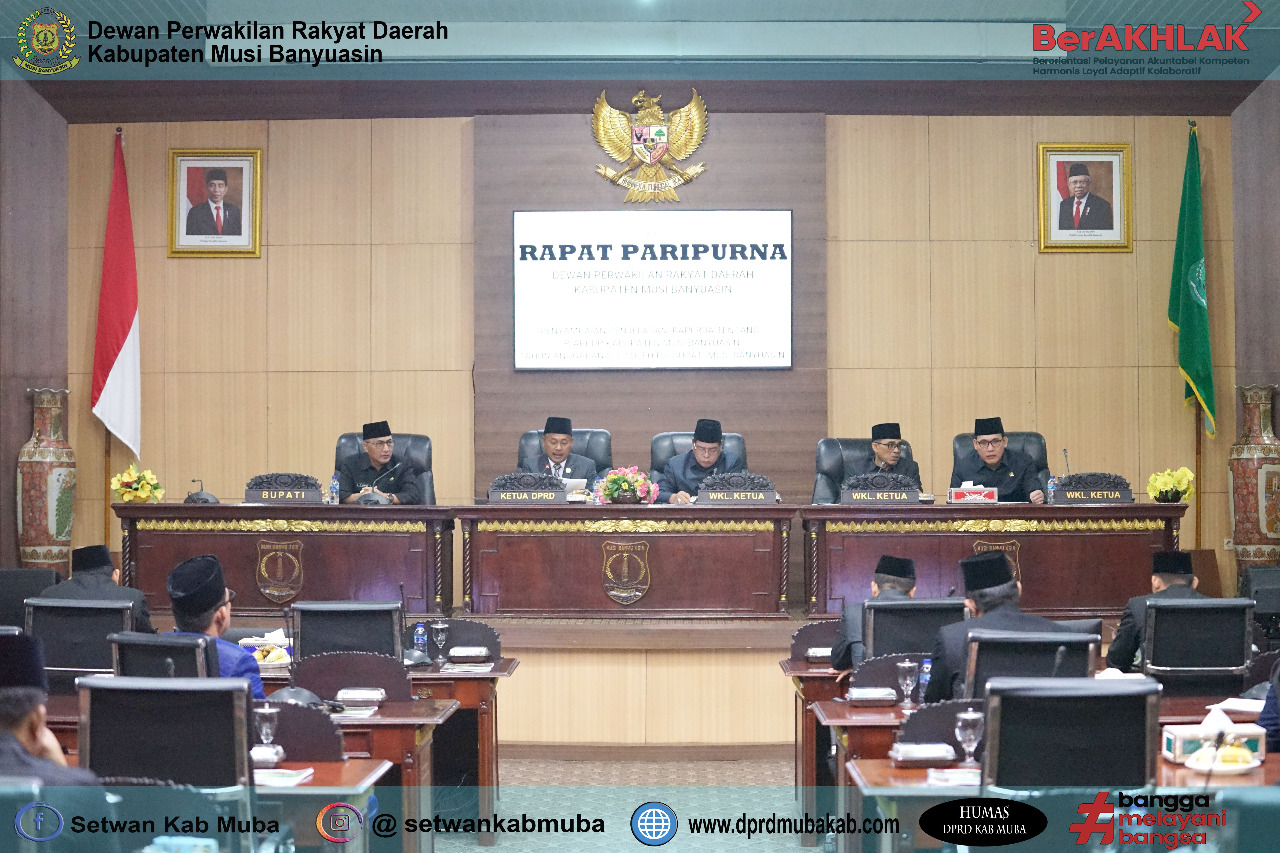 Rapat tersebut dipimpin oleh Ketua DPRD Ketua DPRD Sugondo didampingi Wakil Ketua I DPRD Jonkenedi, SIP.,M.Si, Wakil Ketua II DPRD Irwin Zulyani, SH dan Wakil Ketua III DPRD Endi Susanto, SE dan dihadiri PJ. Bupati Muba Drs. H. Apriyadi, M.Si, PJ. Sekretaris Daerah Muba, Anggota DPRD, Asisten Setda Muba, Plt. Sekretaris DPRD, Polres Muba, Dandim 0401/Muba, Pengadilan Agama Sekayu, Perangkat Daerah Muba maupun pihak terkait lainnya, bertempat di ruang Rapat Paripurna DPRD Muba, Senin (19/9/2022).