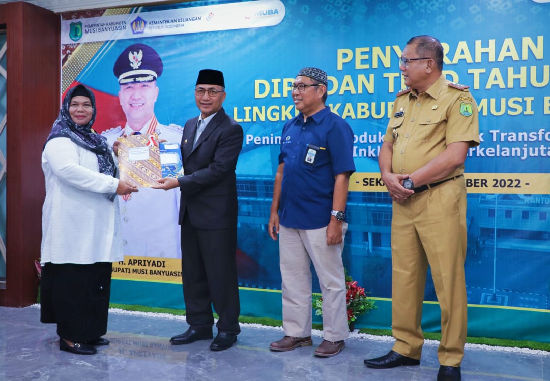 Muba, jurnalsumatra.com – Penjabat Bupati Musi Banyuasin Drs H Apriyadi MSi secara simbolis menyerahkan Daftar Isian Pelaksanaan Anggaran (DIPA) dan Transfer ke Daerah dan Dana Desa (TKDD) Tahun Anggaran 2023 kepada instansi vertikal dan Organisasi Perangkat Daerah di lingkungan Pemerintah Kabupaten Muba, di Auditorium Pemkab Muba, Senin (19/12/2022).