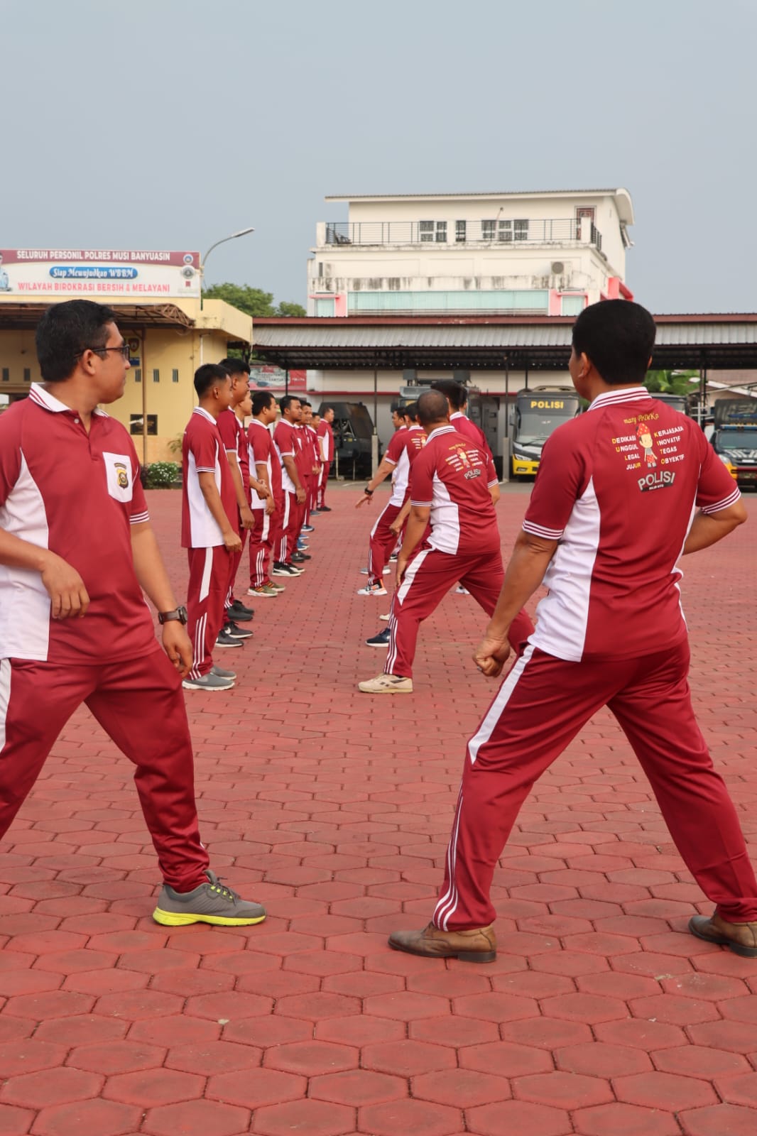 Muba, jurnalsumatra.com – Polda Sumsel,- Bela diri bagi anggota polri memang sangat penting, karena disamping untuk menjaga diri tentunya tidak lepas kaitannya dengan pelaksanaan tugas sebagai pelindung, pengayom dan pelayan masyarakat. Maka dari itu, Kepolisian Resort Musi Banyuasin mempunyai jadwal untuk berlatih bela diri, sekaligus untuk menjaga kebugaran tubuh para personil.