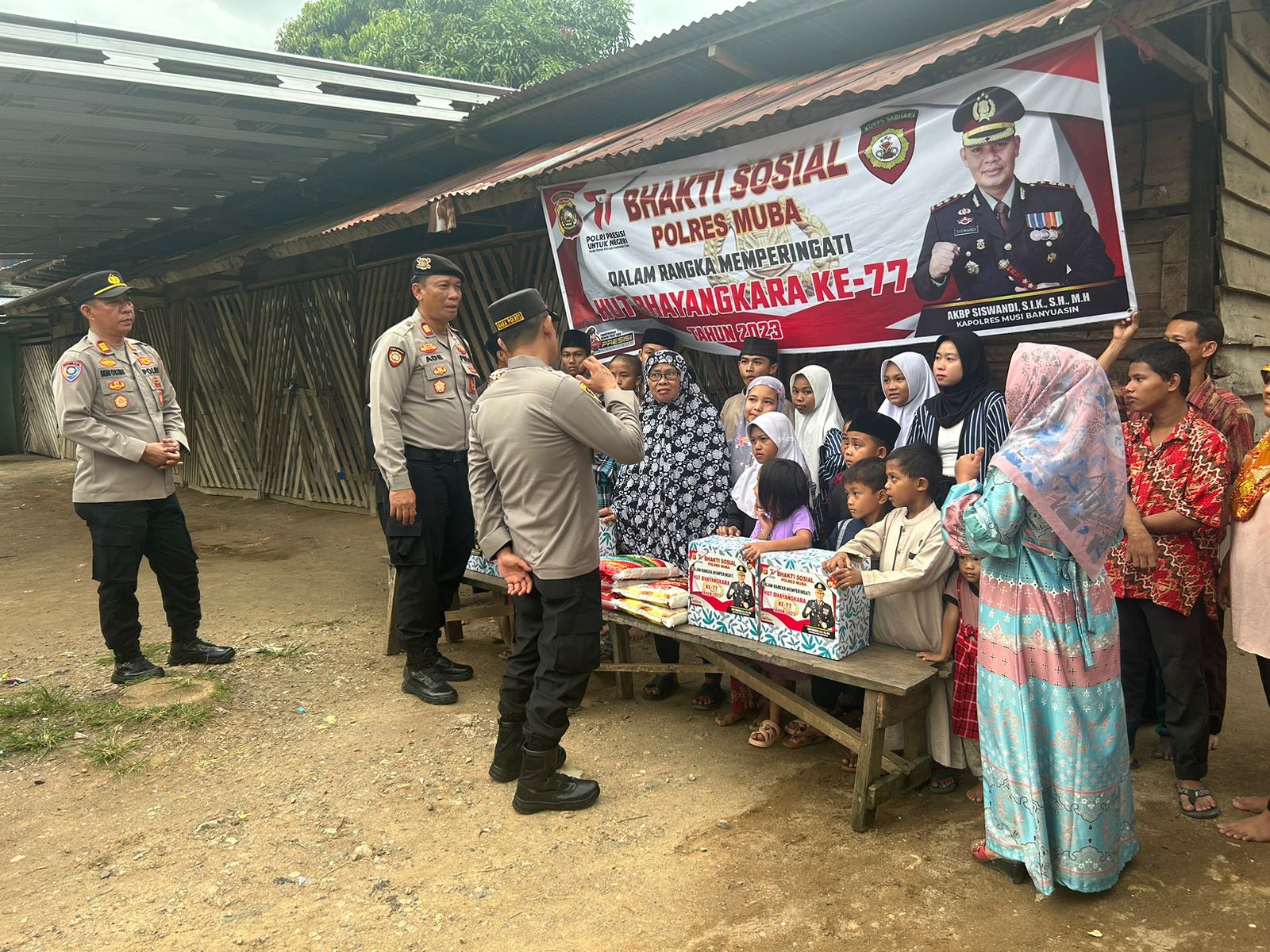 Kegiatan tersebut, dihadiri Wakapolres Muba Kompol Malik Fahrin Husnul Aqif. SH. Sik. yang didampingi Kasat Binmas Akp. Beni Okimu SH dan Kasat Samapta Akp. Ade Nurdin SH. serta personil gabungan satuan Bimmas dan Satuan Samapta. “Menjelang Hari Bhayangkara ke 77 ini kami dari polres Muba mohon doanya, agar semua anggota polri khususnya polres Muba, selalu dalam lindungan Allah Swt, bisa melayani masyarakat lebih baik lagi dan Muba selalu kondusif kamtibmasnya.”Ujar Kompol Malik.