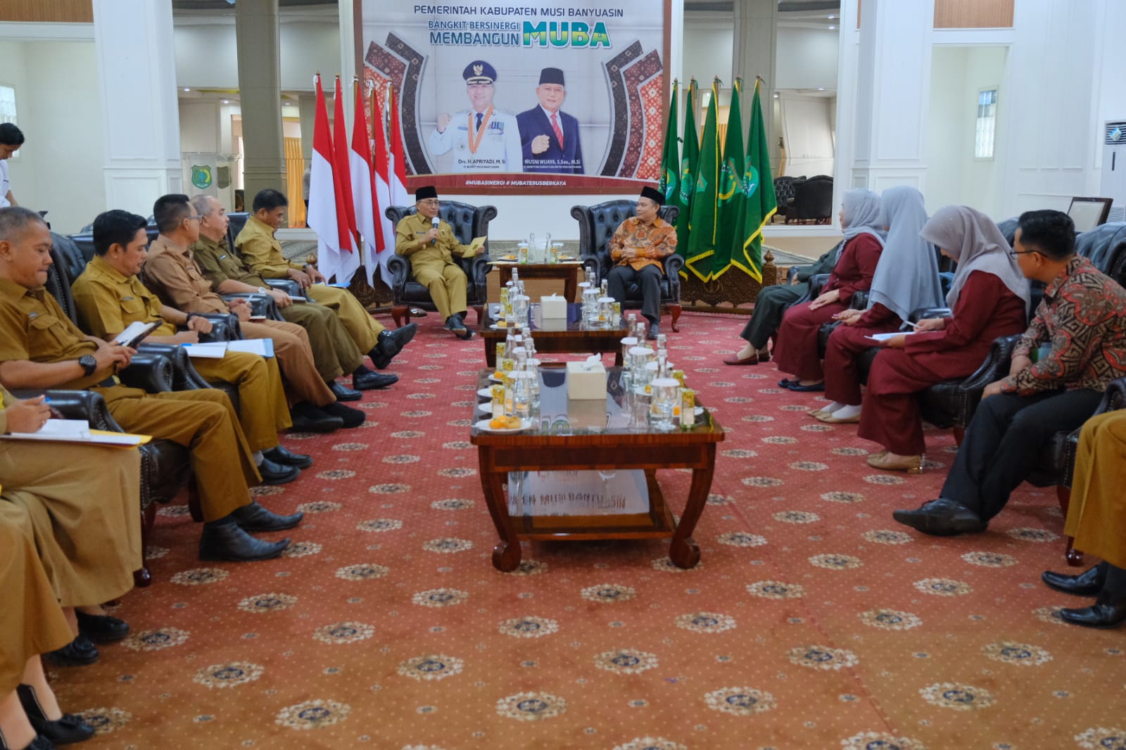 Saat menerima audiensi Pengurus Sekolah Tinggi Ilmu Kesehatan (STIKES) Abdurahman Palembang di Guest House Griya Bumi Serasan Sekate, Senin (03/07/2023). PJ bupati Muba Apriyadi Mahmud mengatakan, bahwa ia menyambut baik kerjasama yang diinisiasi oleh Pengurus Sekolah Tinggi Ilmu Kesehatan (STIKES) Abdurahman Palembang dan siap bersinergi untuk mengembangkan sumber daya manusia khususnya bidang kesehatan.