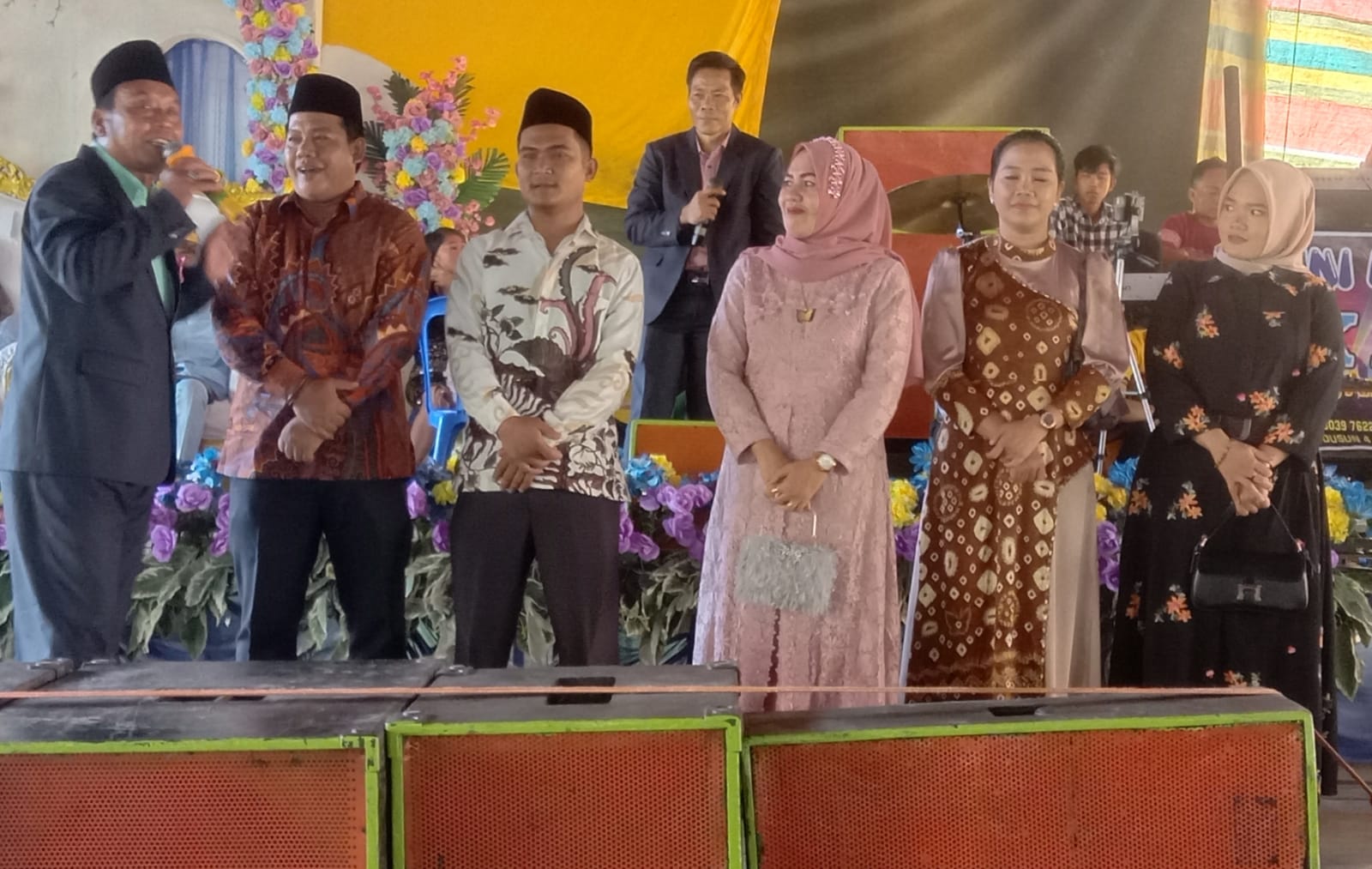 Muba, jurnalsumatra.com ,- Saat menghadiri Resepsi pernikahan Arif Hidayat dengan pasangannya Wiwit Sintia warga desa Kertajaya, Kecamatan Sungai Keruh, Kabupaten Musi Banyuasin (Muba), Sabtu (22/7/2023) bertempat di desa Kertajaya. Lima orang Bakal Calon Legislatif legislatif (Bacaleg) untuk daerah pemilihan (Dapil-2) yakni Eni Eliza SE, politisi Partai Golkar, Irwanto politisi partai Golkar, Nuti Romayana Spdi pilitisi partai Demokrat, Nangimul Huda, politisi partai PKS dan Gustina politisi partai Grindra diminta oleh warga untuk bernyanyi dan bergoyang.