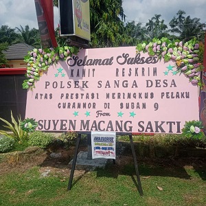 Muba, jurnalsumatra.com – Polda Sumsel,- Keberhasilan unit Reskrim Polisi Sektor Sanga desa (Sandes) dalam mengungkap kasus pencurian kendaraan bermotor, mendapatkan apresiasi dari masyarakat. Hal ini dilihat dari karangan bunga yang dikirim oleh masyarakat sebagai ucapan terimakasih kepada Polsek Sanga Desa atas kinerjanya tersebut.