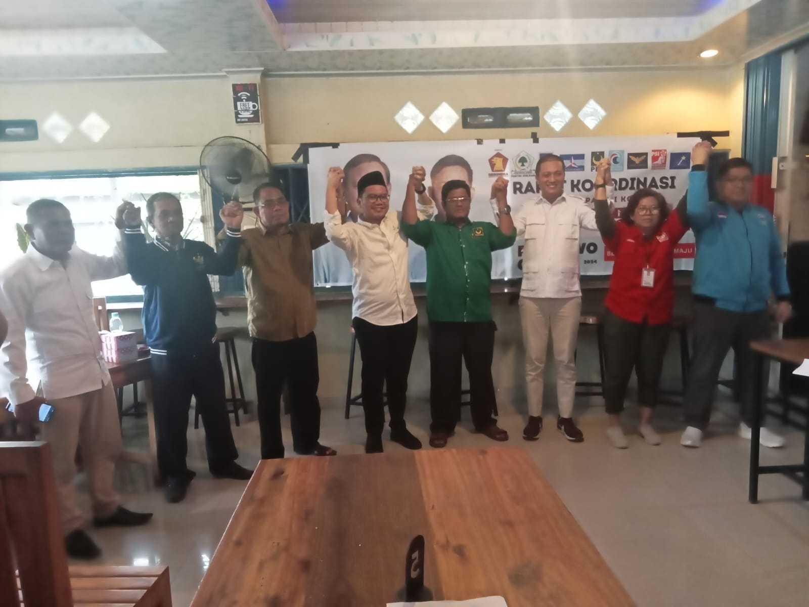 Rapat koordinasi pimpinan partai koalisi Indonesia Maju tingkat Kabupaten Ogan Ilir ini dihadiri sembilan pimpinan Parpol koalisi yaitu Gerindra, Golkar, PAN, Demokrat, PBB, Gelora, PSI, Garuda, dan Partai Prima.