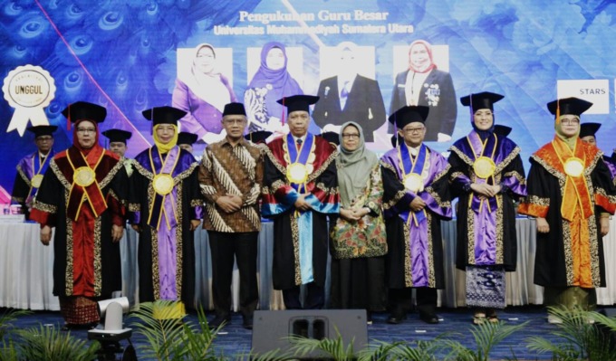 Medan, jurnalsumatra.com – Empat dosen Universitas Muhammadiyah Sumatera Utara (UMSU) dikukuhkan sebagai guru besar untuk berbagai disiplin ilmu melalui sidang senat terbuka yang digelar di auditorium kampus Jalan Kapten Mukhtar Basri Medan.