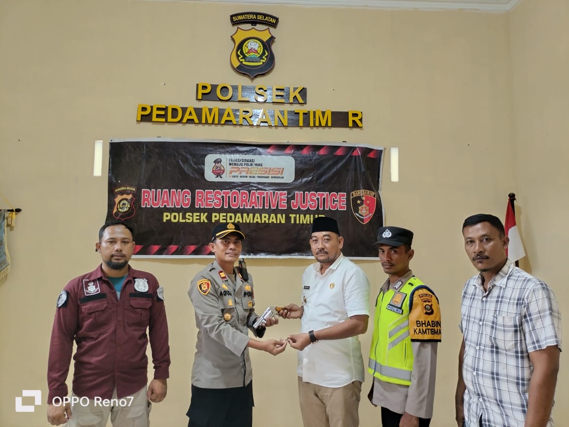 “Hari ini sekitar pukul 11.00 WIB di Mapolsek Pedamaran Timur, telah diterima serahan sepucuk senpi rakitan laras pendek warna silver berikut 1 butir amunisi,” ungkap IPTU Agus.