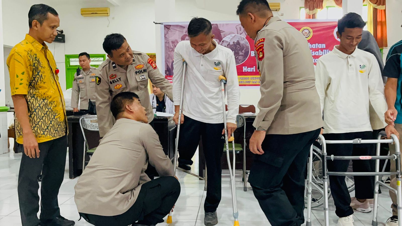 “Disamping itu, kita juga memberikan bantuan berupa sebuah kursi roda, sepasang kruk, sebuah alat bantu berjalan, 75 paket sembako serta bantuan dana Rp 5 juta rupiah,” imbuhnya.