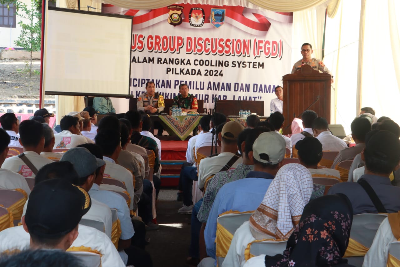 Cooling system yang ‘dibalut’ dengan kegiatan focus group discussion (FGD), kali ini digelar bertempat di Mapolsek Kikim Timur dan dibuka langsung oleh Kapolres Lahat, AKBP God Parlasro S. Sinaga, Rabu (21/8/2024).