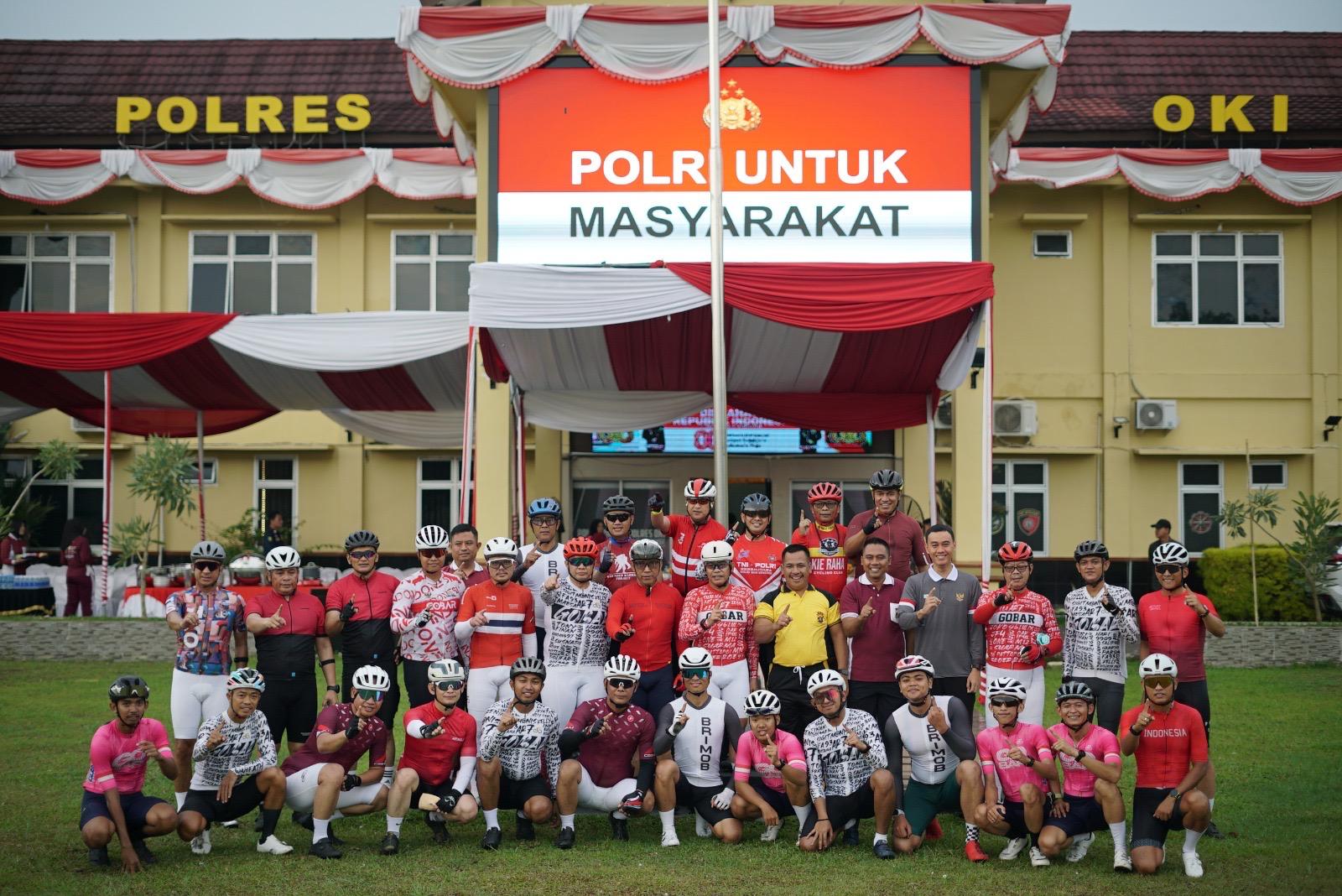 Kapolres OKI AKBP Eko Rubiyanto menyampaikan apresiasi dan rasa bangganya atas kunjungan Kapolda Sumsel melalui kegiatan Gowes Bareng Musi ini.