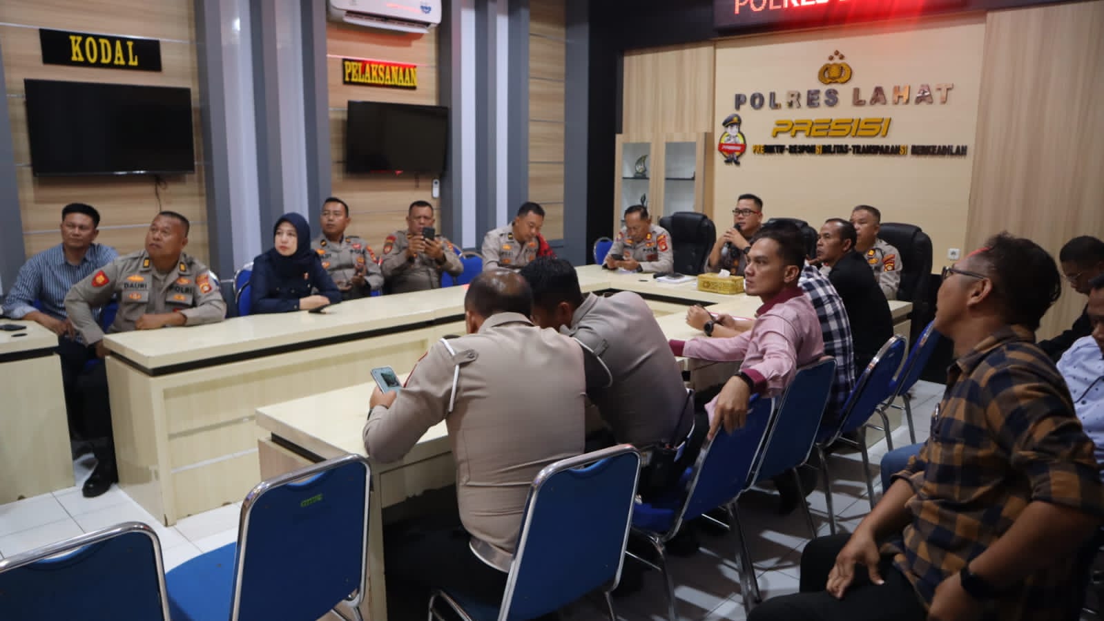 LAHAT, JURNAL SUMATRA – Kapolres Lahat AKBP Novi Edyanto SIK, MIK diwakili Kabag Ops Kompol Toni Arman SH, M,Si memimpin rapat dalam rangka mengantisipasi potensi gangguan keamanan dan ketertiban masyarakat (Kamtibmas) pada kegiatan hari santri nasional serta aksi bela Palestina.