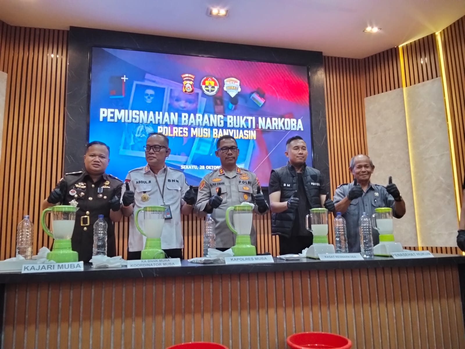 MUBA, JURNAL SUMATRA – Kepolisian Resort (Polres) Musi Banyuasin (Muba) melakukan pemusnahan barang bukti berupa narkotika jenis sabu dengan berat netto 2.955 Kilogram, bertempat di ruang Aula Polres Muba, pada Selasa (28/10/2025) siang.