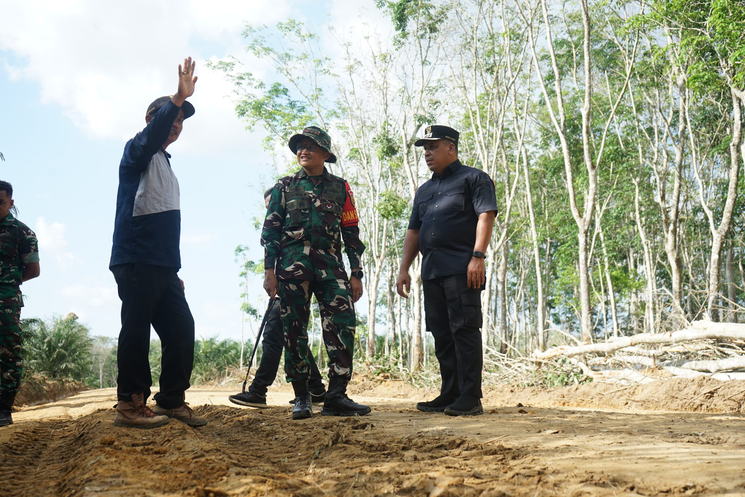 Peninjauan ini dilakukan guna memastikan pelaksanaan program TMMD berjalan sesuai rencana dan target yang telah ditetapkan. Di lokasi, Dandim dan Wakil Bupati melihat langsung kondisi medan serta perkembangan pengerjaan jalan yang menjadi akses penting bagi masyarakat desa.